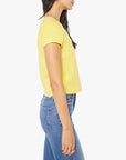 Team MOTHER. A shrunken crewneck tee with extra-short sleeves and a cropped hem. Made from 100% cotton in yellow, The Itty Bitty Ringer in I'm Gonna Win features colorful block text on the front.